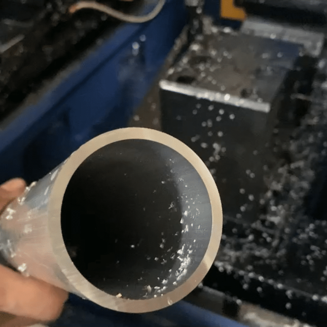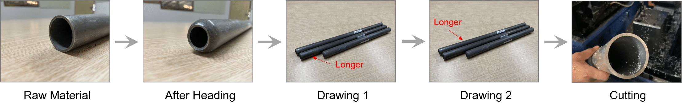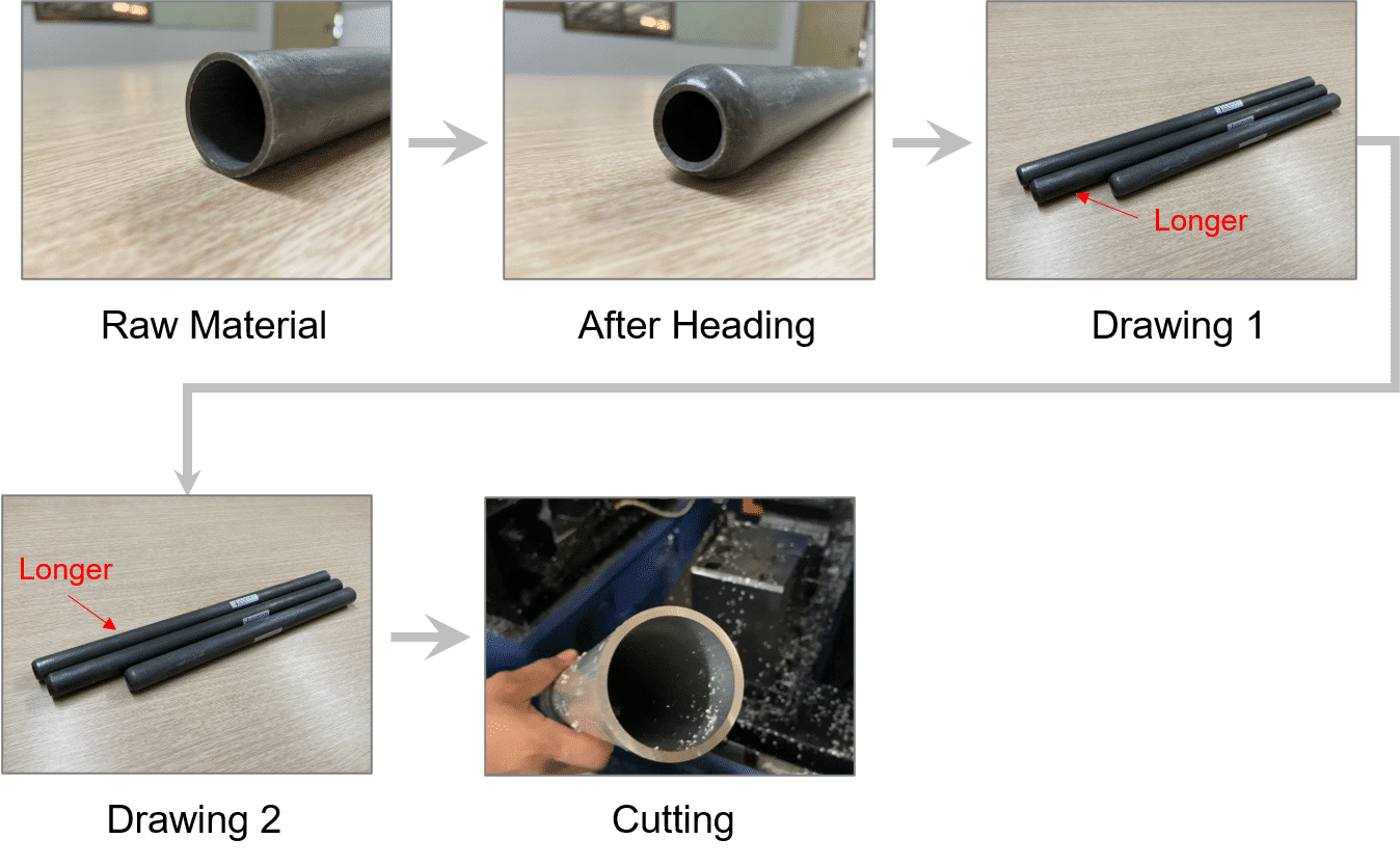 經過兩次抽管後,管件長度會有所差異,藉由切管,切除餘料,使管件長度近乎一致